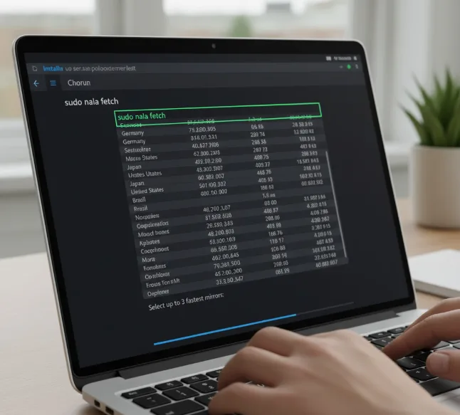 Select the three fastest mirrors when prompted. The system saves your selections and applies them to future downloads.