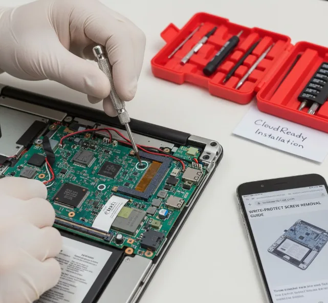 Some Chromebooks like the Pixel models have a physical write-protect screw. You’ll need to open the device and remove this screw to allow CloudReady installation.