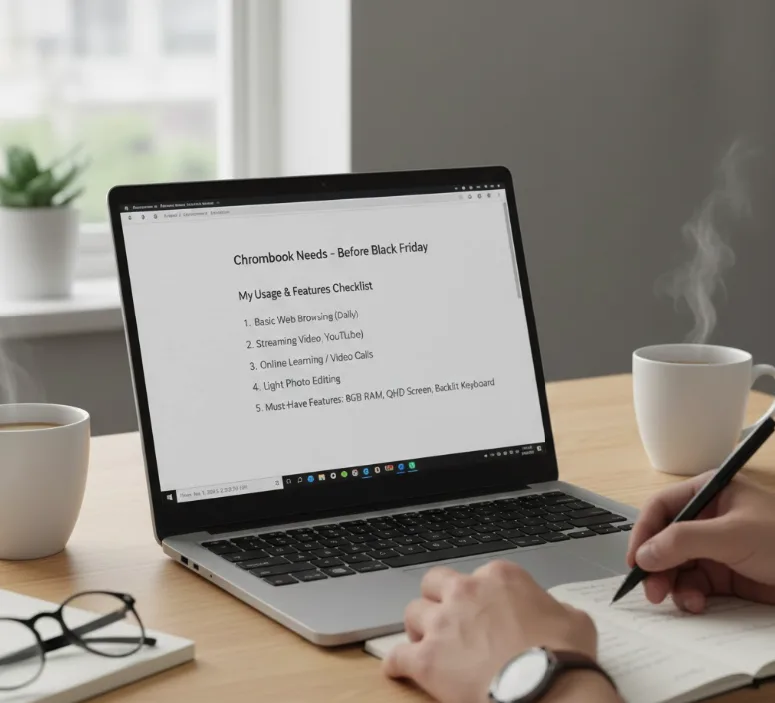 Write down your must-have features before shopping to avoid impulse purchases on deals that don’t meet your needs. For guidance on choosing the right Chromebook tier, check out model codes that indicate device quality.
