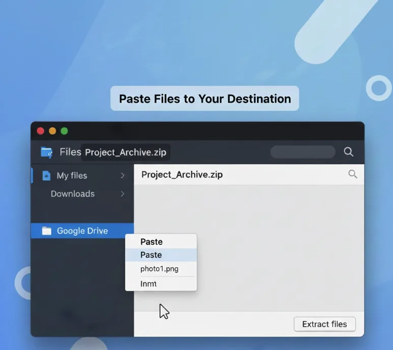 Files go wherever you paste them. There’s no automatic extraction location, giving you complete control over file placement and organization.