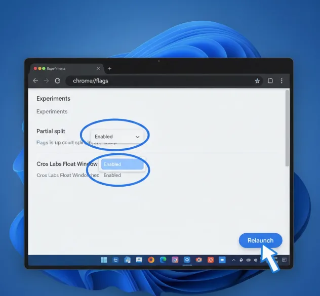 The feature mimics Windows 11’s window tiling system and works with the browser, Android apps, Progressive Web Apps, and Linux apps. You can enable how to enable and use partial split on ChromeOS 105 by activating two experimental flags. This guide shows you the exact steps to set up and use this productivity feature.