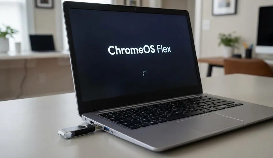 Boot your computer from the USB drive. ChromeOS Flex runs directly from the drive without wiping your existing operating system.