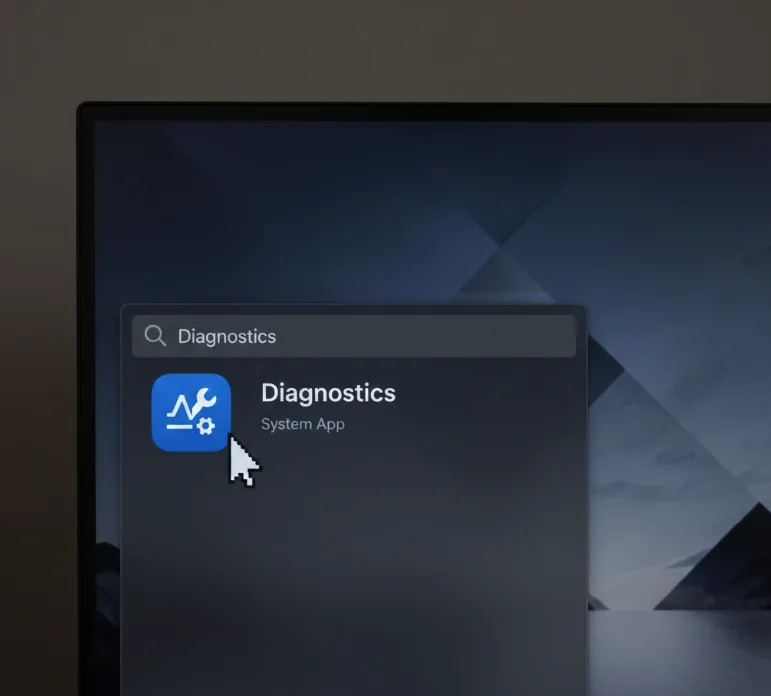 Type “Diagnostics” in the search bar. The new app appears in your results with a system monitoring icon.