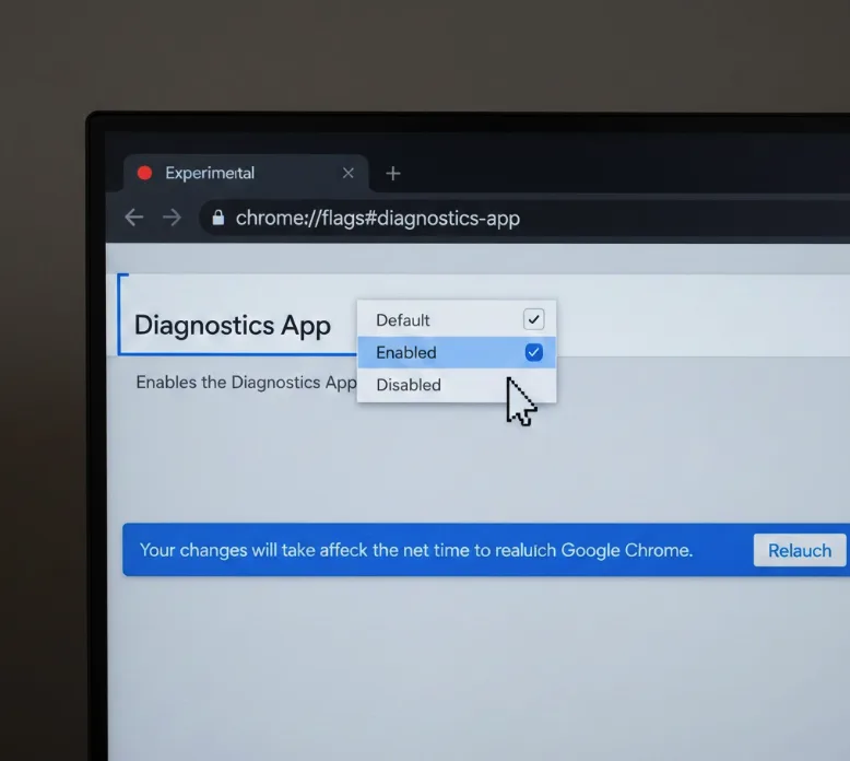 Open a new tab and navigate to chrome://flags#diagnostics-app in your browser’s address bar. This takes you directly to the experimental feature settings.