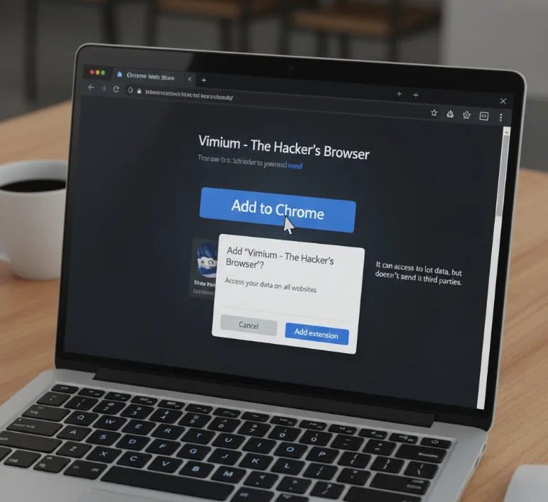 Open the Chrome Web Store and search for Vimium. Click Add to Chrome and allow the requested permissions.