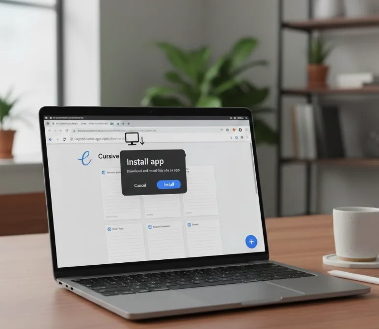 Click the app install icon on the right side of your browser’s address bar. This downloads and installs Cursive as a standalone application on your device.