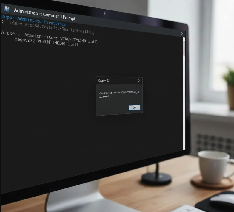 Type regsvr32 VCRUNTIME140_1.dll and press Enter. This command registers the DLL file with Windows.